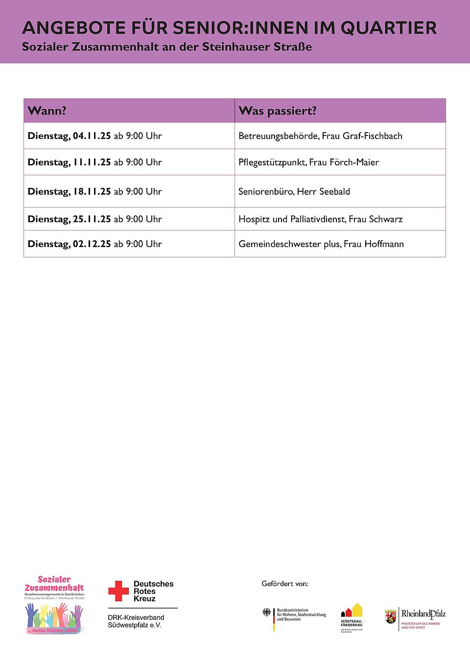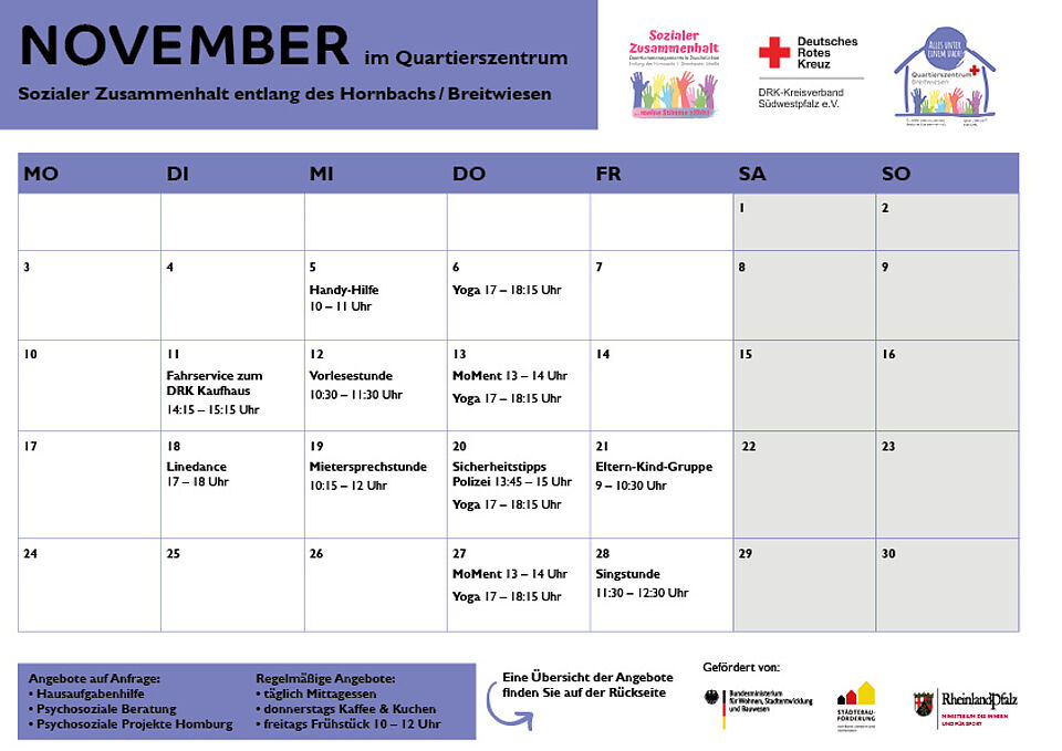 Seit 2013 ist das Deutsche Rote Kreuz mit seinem Quartierstreff im Quartier Bubenhausen/Ixheim vertreten. Im Jahr 2018 sind wir als DRK in Kooperation mit dem Stadtberatungsbüro Dr. Fries nun auch als offiziell von der Stadt Zweibrücken beauftragtes Quartiersmanagement in die soziale Arbeit im Quartier unter der Flagge des Sozialen Zusammenhaltes eingestiegen.