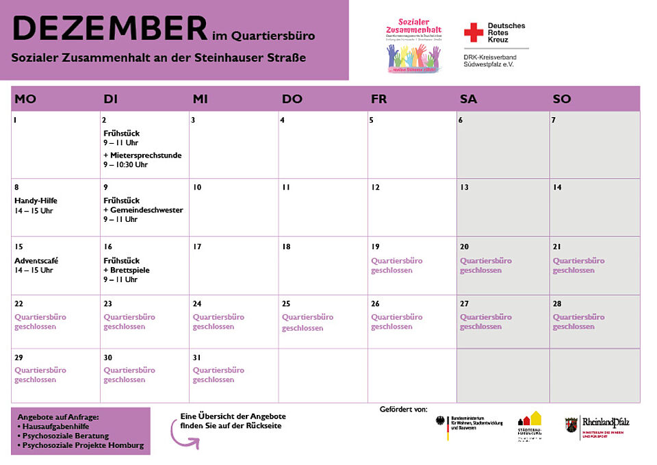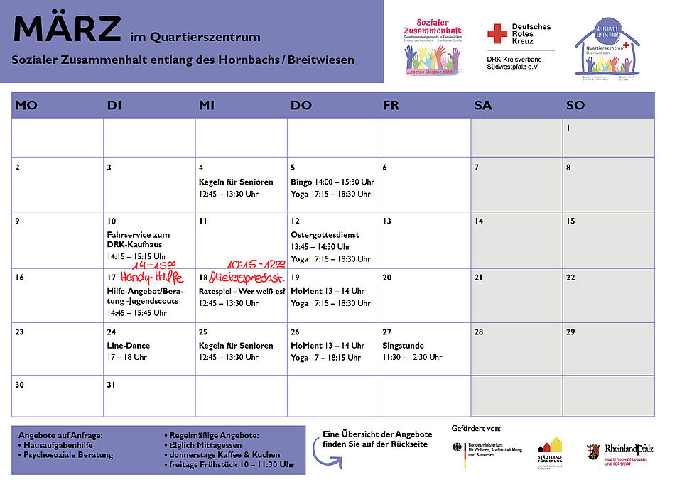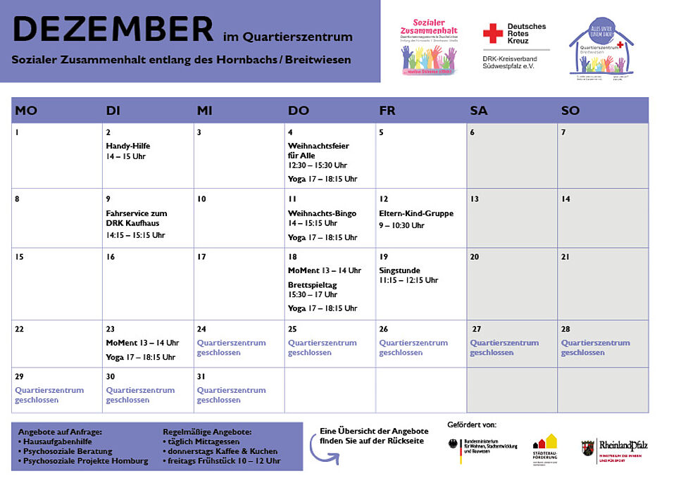 Foto: A. Zelck / DRK-Service…Seit 2013 ist das Deutsche Rote Kreuz mit seinem Quartierstreff im Quartier Bubenhausen/Ixheim vertreten. Im Jahr 2018 sind wir als DRK in Kooperation mit dem Stadtberatungsbüro Dr. Fries nun auch als offiziell von der Stadt Zweibrücken beauftragtes Quartiersmanagement in die soziale Arbeit im Quartier unter der Flagge des Sozialen Zusammenhaltes eingestiegen.